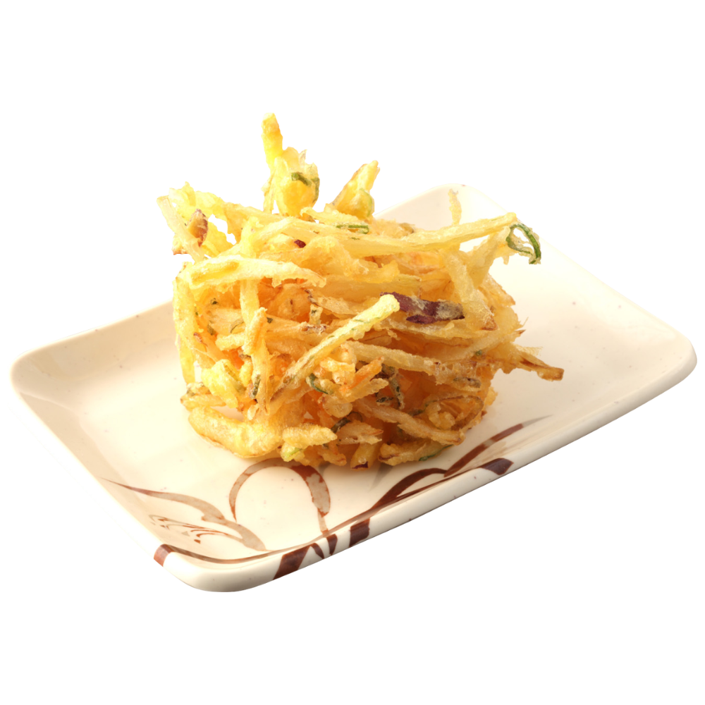 A crispy medley of onions and mixed vegetables—sweet, savory, and satisfyingly big.Dip it in Tentsuyu sauce to enjoy the full flavor of each ingredient.